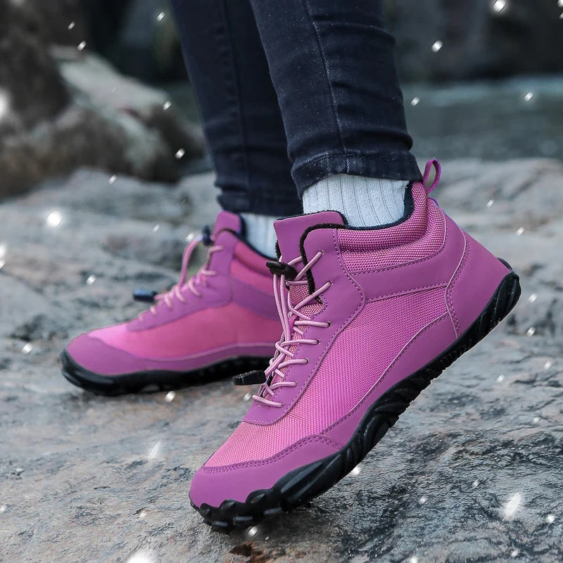 Designed as the ultimate unisex cold weather barefoot hiking shoe, Borealis blends minimalist freedom with weather-defiant engineering keeping you grounded, agile, and warm in the wildest terrain. Unlike bulky hiking boots that restrict your stride, Borealis is built on a barefoot philosophy: let your feet move the way nature intended. The flexible zero-drop sole supports natural foot movement, promoting balance, stability, and full muscle engagement even in snow, ice, or slush. Borealis features a crystal plush fleece lining that locks in heat without overheating your foot. The interior hugs your foot in thermal softness while maintaining consistent warmth from heel to toe.