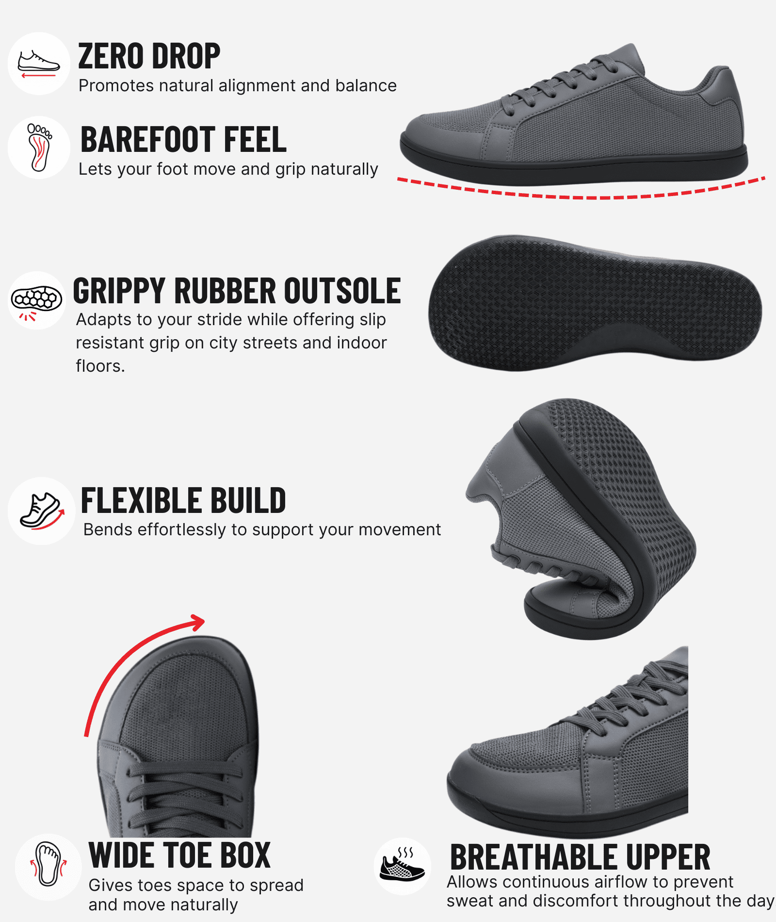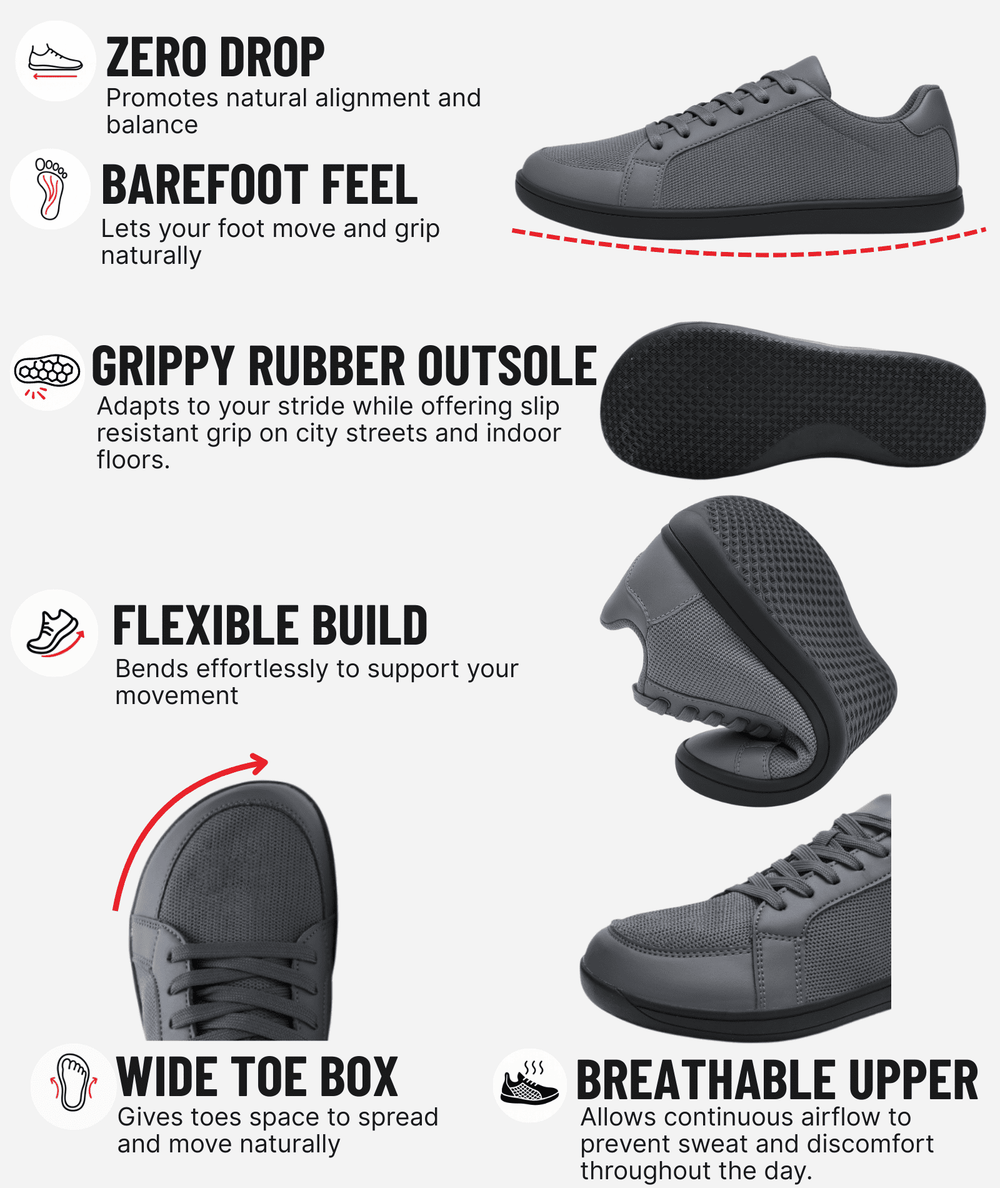 Calden is built for clean looks and natural movement — with a zero-drop sole, flexible design, and foot-shaped fit. These barefoot sneakers blend all-day comfort with dressed-down style, making them perfect for city walks, work commutes, and everything in between. For those who want structure without restriction, Calden keeps you aligned, grounded, and effortlessly in motion.